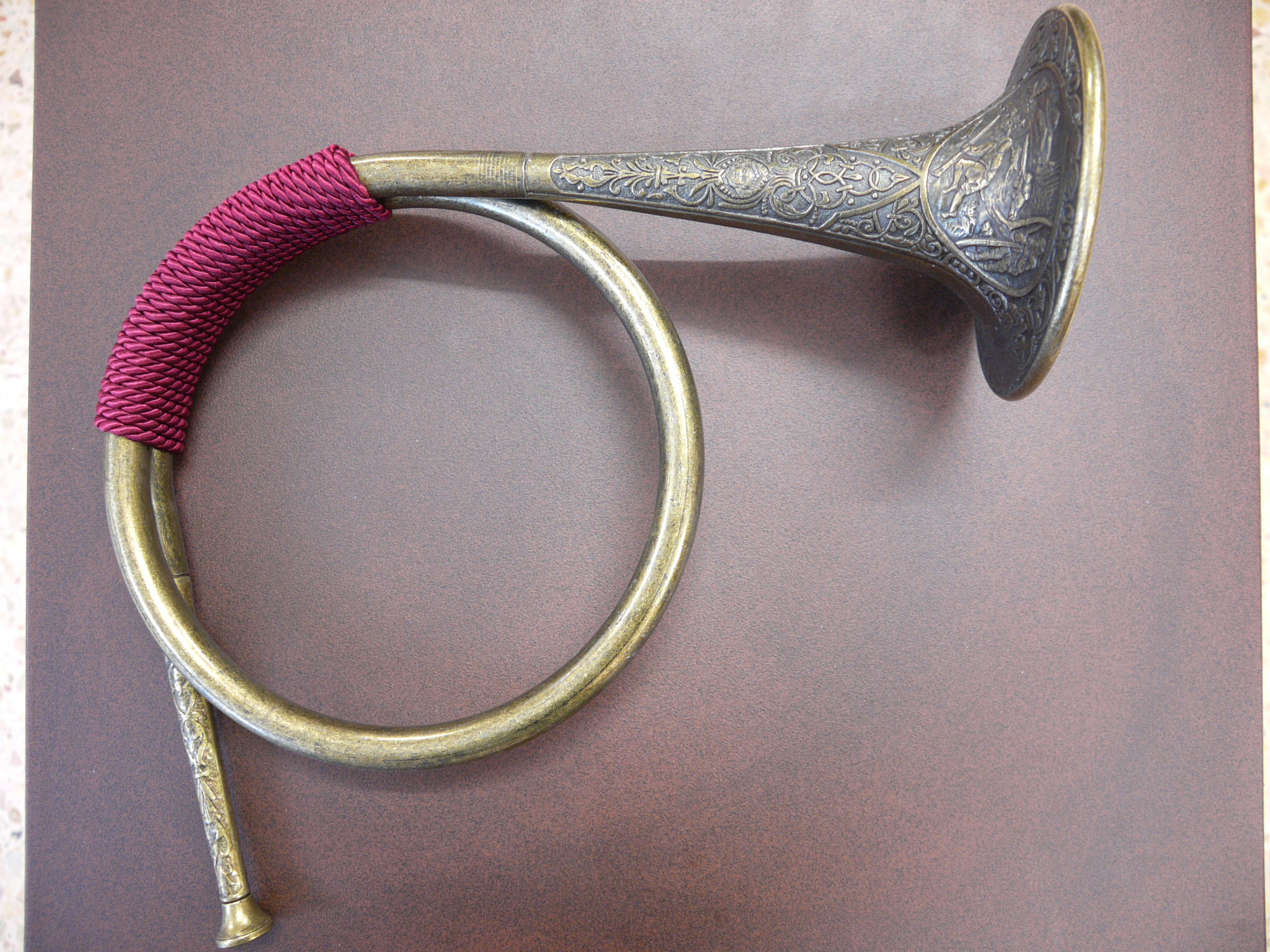 Reproduccion de una corneta militar antigua, realizada en fundicion de metal