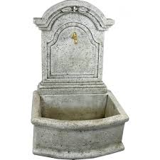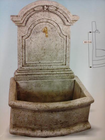 Fuente pared medieval estilo rústico con grifo, para conectar al agua corriente, se sirve con grifo. Disponible en acabdo en pátina ceniza.