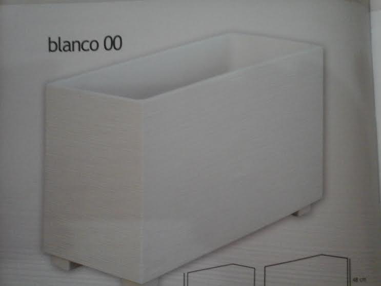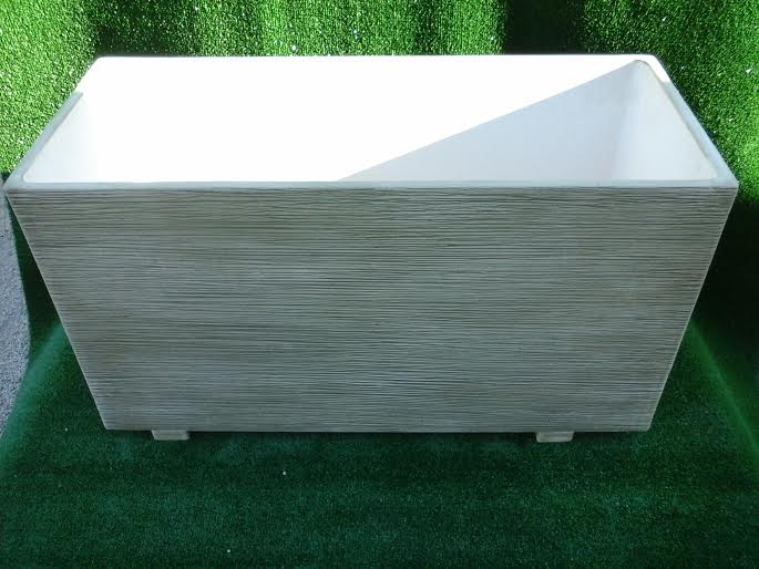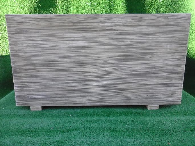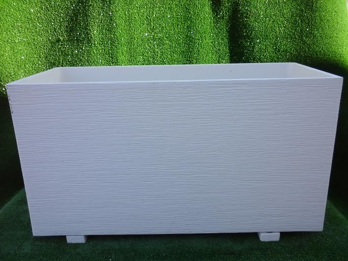 Jardinera rectangular Mediterránea de 90 fabricada en piedra artificial, resistente a los elementos climáticos. Disponible en color blanco, teja, avellana, verdoso y gris.