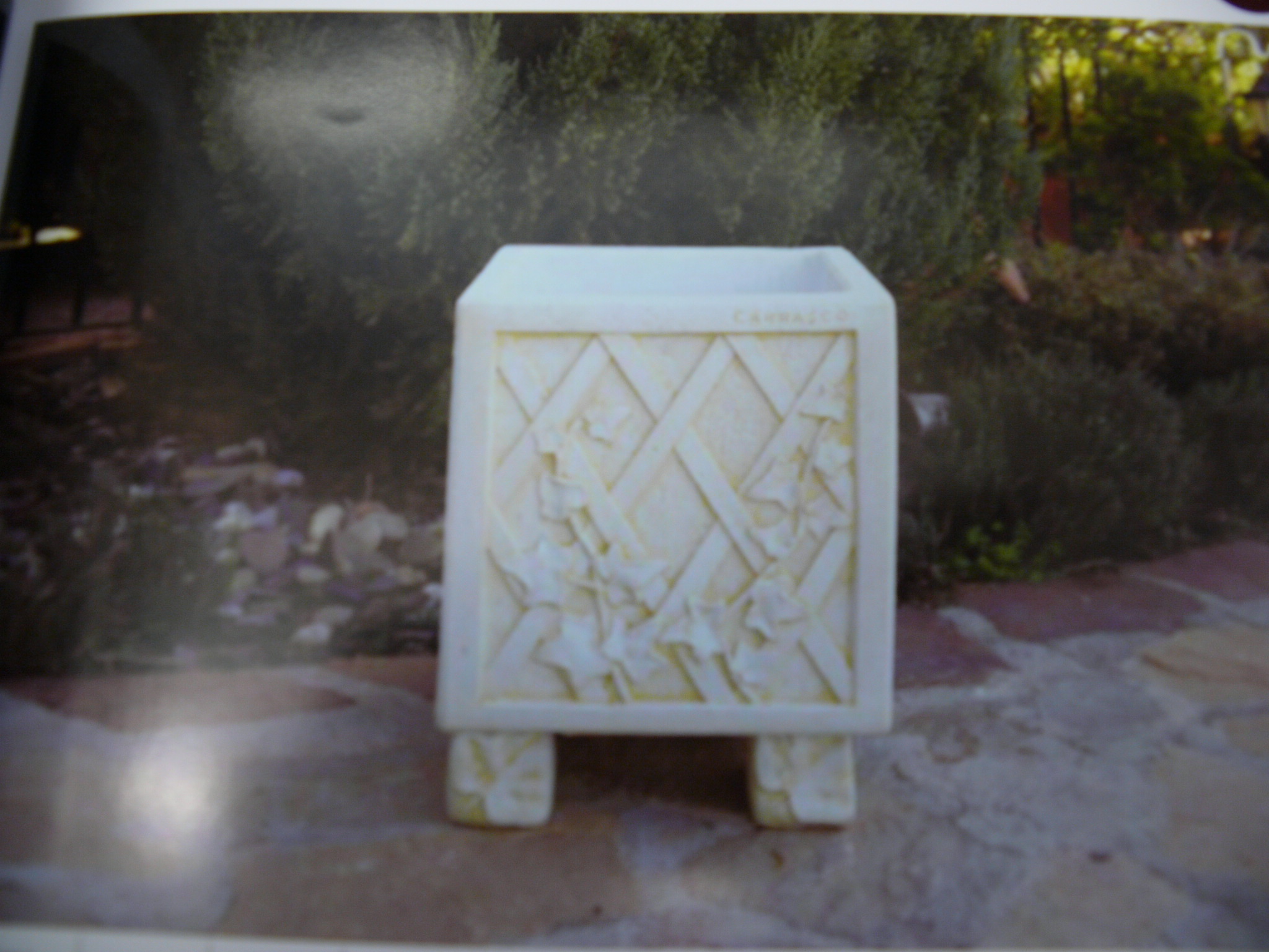Macetero de piedra artificial cuadrado, con medidas de 40 cm. de alto por 40 cm. de lado, incluye pies.