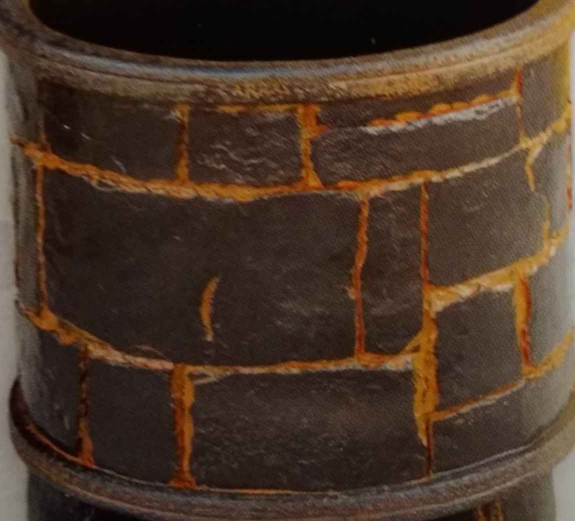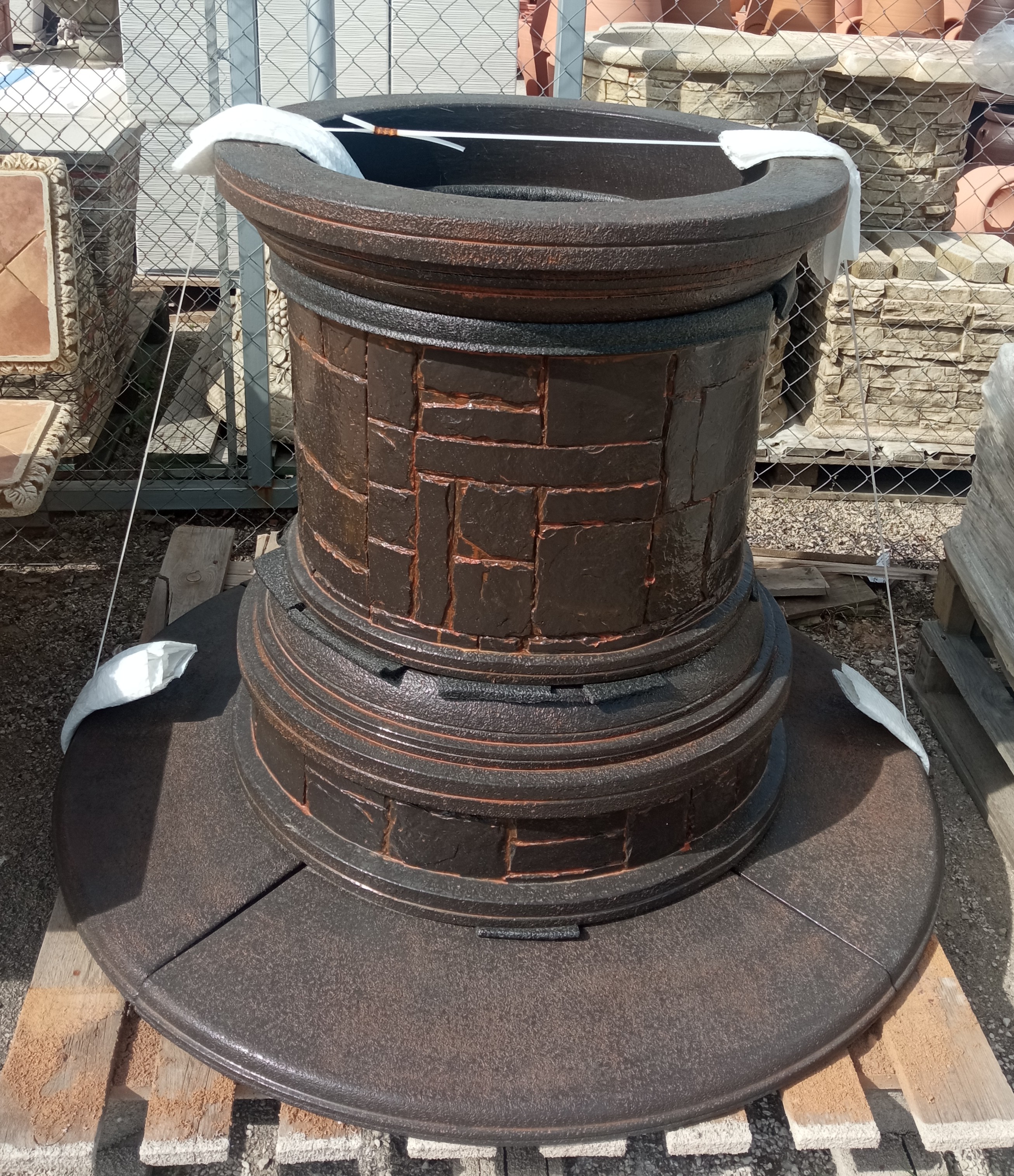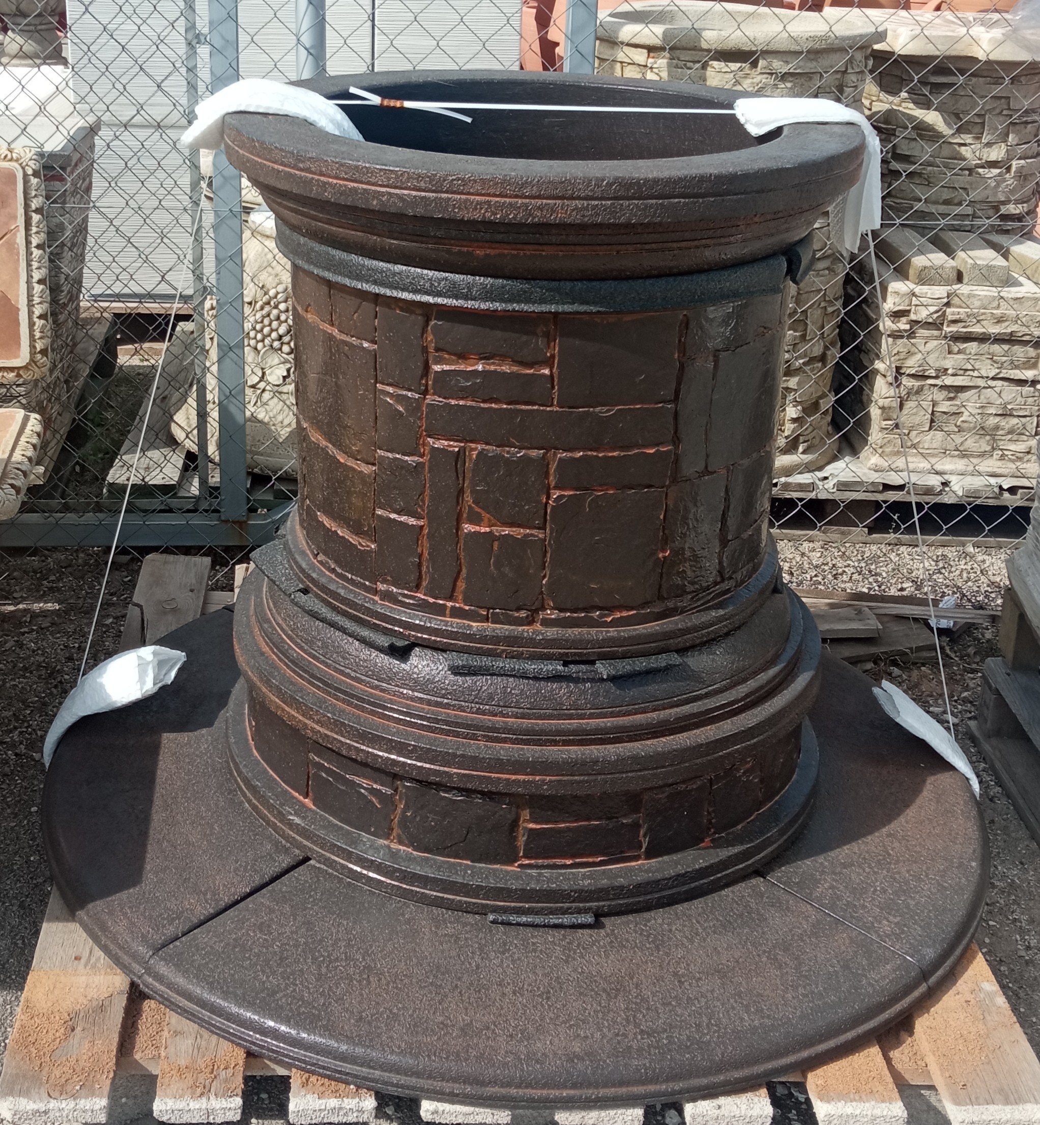 Brocal de pozo con acera, modelo Mediaval, fabricado en piedra artificial pintado en color óxido.